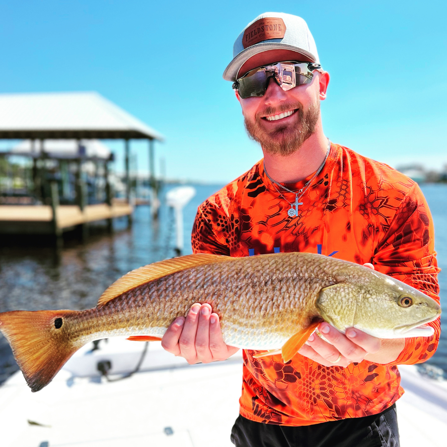 In early October, slot redfish begin to show up in schools on grass flats, jetties, and shore lines along the Gulf Coast. The water temperature has dropped after cool fronts moved through the area. A nice change from the boiling August heat. It is the first sign that redfish mayhem is about to kick off in Orange Beach, AL. Around the 3rd week in October, the shores along the beach are covered with bait. Pelicans and gulls can be seen diving any direction you look. THE STAGE HAS BEEN SET.