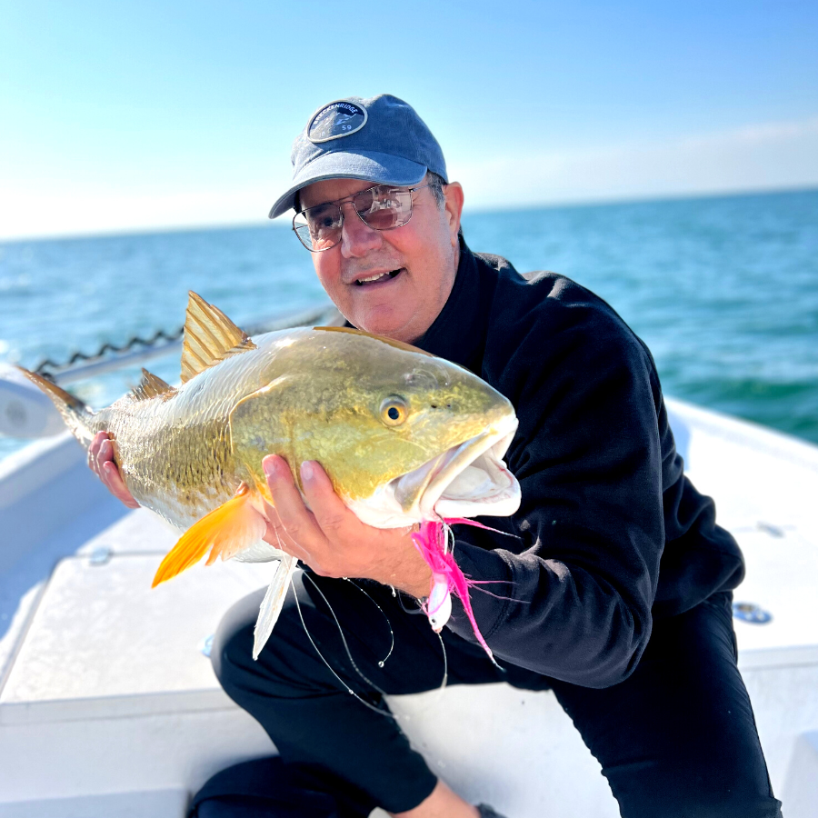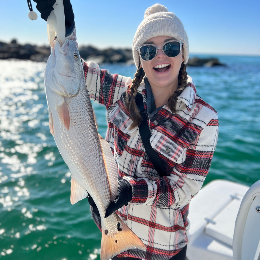 This is, by far, one of the most memorable times to fish throughout the year! Once a school is found, it doesn't take long to hook into one of these giant redfish. We throw BIG two ounce hair jigs and extra large grubs to get their attention.