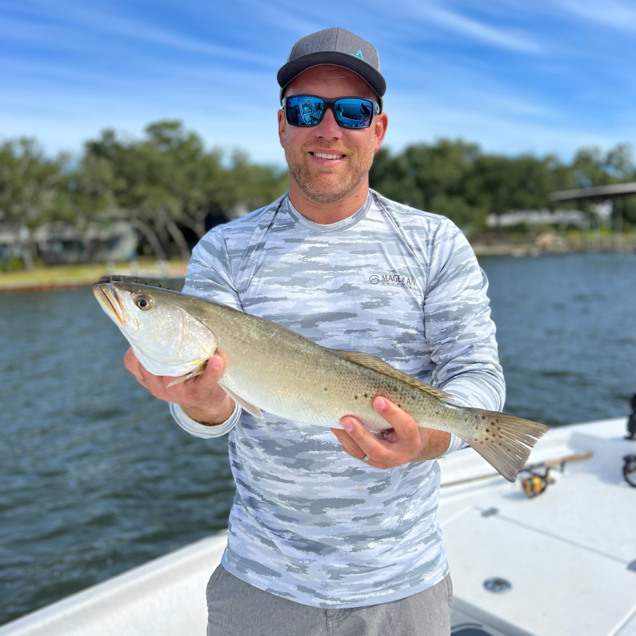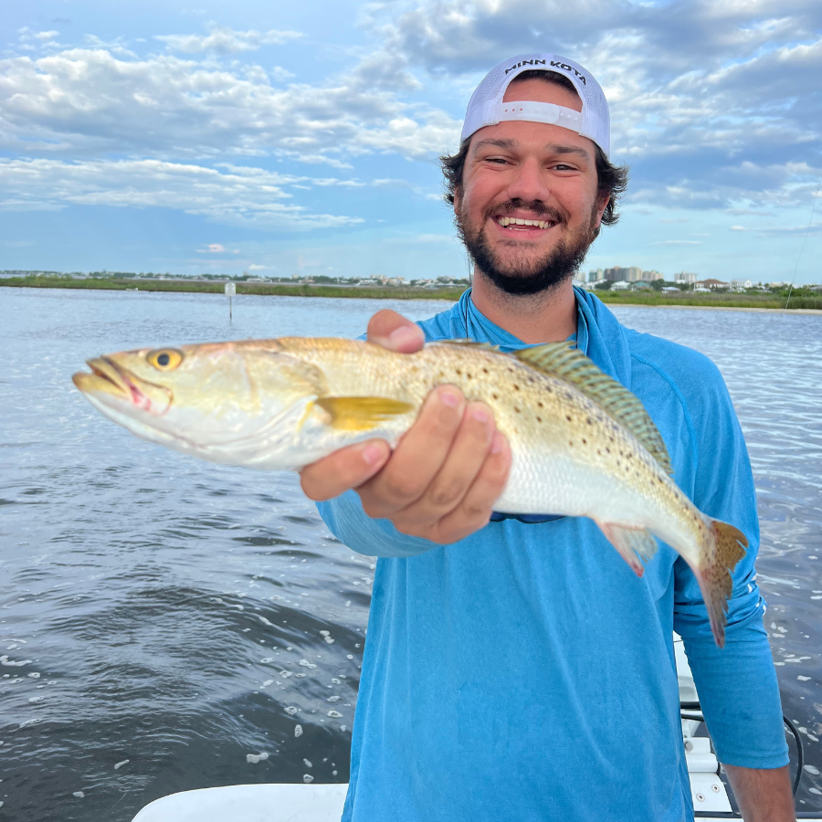 Fishing the cold months for speckled trout can be a lot of fun for avid anglers. Due to the cold blooded biology of fish, as the water temperatures drop the trout move to deep water and mud flats. This gives anglers the chance to hook quality trout in the backwaters of Orange Beach, AL. It is a different style of fishing, in contrast to the shallow coastal grass flats we pick apart throughout summer.