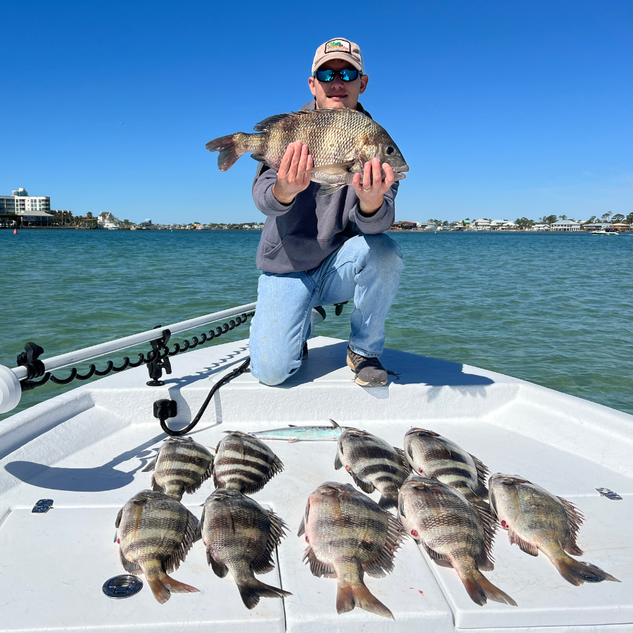Once the weather gets down right cold, Sheepshead show up and fishing gets hot! These fish have gained popularity in recent years. Their mild white flesh taste great cooked any way you desire. These fish are very strong fighters and typically run in large schools during the chilly months. It makes for a great day out on the water!