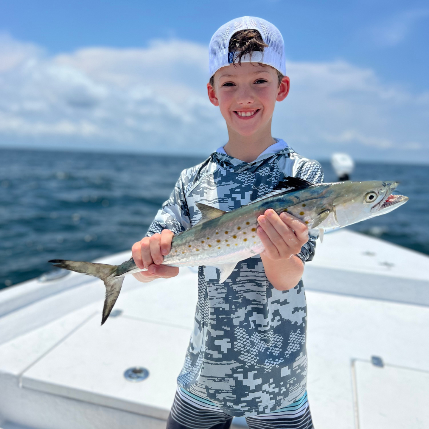 A MAIN STAPLE OF SUMMER FISHING ARE SPANISH MACKEREL. THEY ARE FOUND ALONG THE SHORELINE, ALL THE WAY OUT TO REEFS A FEW MILES OFFSHORE. THEY CAN BE CAUGHT WITH LIVE BAIT AS WELL AS SPOONS. SPANISH ARE THE PERFECT FIGHT FOR KIDS, ALTHOUGH MOM AND DAD WILL SURELY HAVE FUN AS WELL!